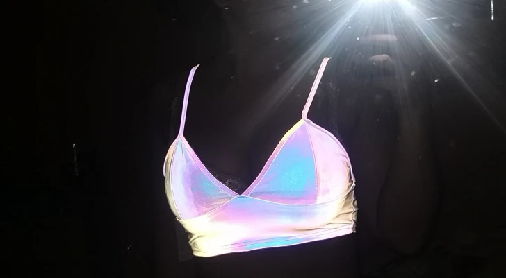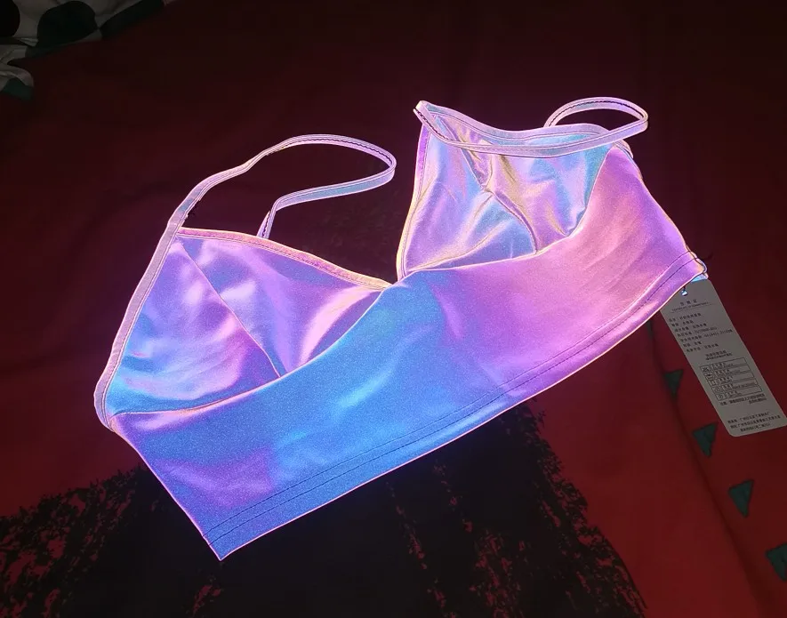 Looking for something totally fabulous and sure to command attention? Look no further than this Reflective Rainbow Crop Top!